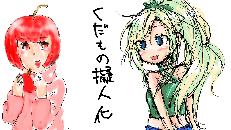 テーマは「果物擬人化」。 右が私、左がフジミヤさんです。